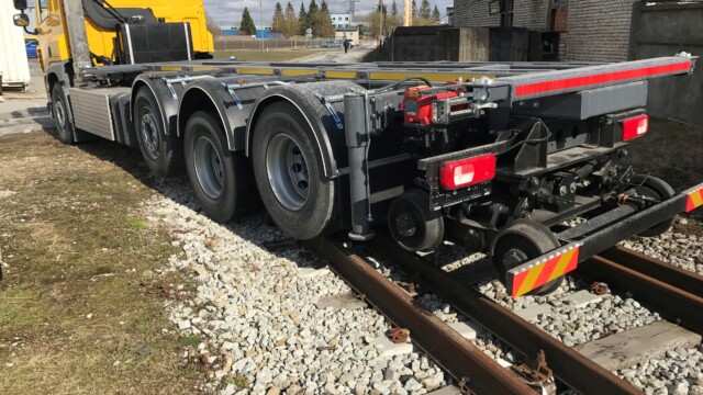 Meidän suunnittelemamme ja valmistamamme kiskotelit ovat käytännössä apupyöriä, jotka pitävät auton kiskoilla. Ajoneuvon veto, jarrutus ja jousitus hoidetaan perusauton pyörillä.
